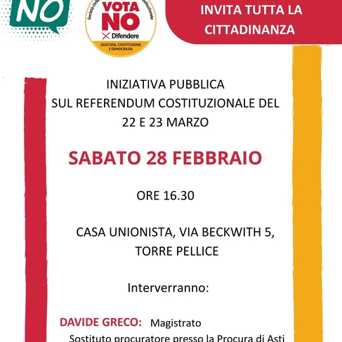 ANPI sez. Torre PelliceComitato Pinerolese per il NOinvitano la cittadinanza a partecipare INIZIATIVA PUBBLICA SUL REFERENDUM COSTITUZIONALE DEL 22 E ...